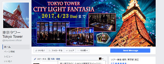 以一個星期為單位頻繁張貼文章,隨時更新資訊。另一個重點在於,由於東京鐵塔為日本具有代表性的觀光景點,因此文章也會為外國觀光客附上英譯內容。再加上,該專頁會隨著季節更迭更換封面相片,容易留住用戶的目光。