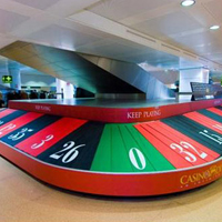 ▲義大利的廣告商Admcom為義大利的賭場Casino Di Venezia做的廣告。他們在威尼斯馬可波羅機場把傳統無趣的行李輸送帶轉變成賭場的輪轉盤,這項設計不僅讓等待的旅客不無聊,根據賭場的統計,自從這個吸引眾人目光的宣傳活動後,賭場人數增加了60%。【圖片來源】