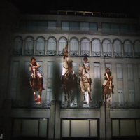 轟隆一聲,在美國街頭巴洛克式建築的牆面上,窗戶開始忽明忽暗,強烈的光束在牆上,如雕刻般構起圖來,畫出品牌代言的小精靈們。接著耀眼白光籠罩了觀賞者的視覺,這時你會發現,窗內有幾個人影開始恍恍走動。隨著觀賞著尖叫聲此起彼落,建築物轉化成高級的伸展台,模特兒們依序出場,肆情展現舞台上專業的一面!