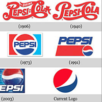 百事可樂走過一世紀,品牌標誌也歷經無數次的更改,但百事始終保留當初瓶蓋的設計概念,幾經修改成為如今圓形的商標。而紅藍對比的品牌識別色,也為百事的招牌。