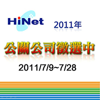 (2011-07-08)中華電信HiNet徵求公關服務案,自7月9日起至28日歡迎公關代理商上網參閱公告招標消息。