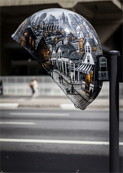 這項名為「Call Parade」的電話亭改造活動是由巴西最大的電信商Vivo所發起,地點選在巴西大城聖保羅(São Paulo),廣邀一百名藝術家來參加這項活動,並且沒有任何設計風格的限制,讓藝術家們可以在盡情發揮創意,像這座由Mariane Borgomani的設計,將電話亭的殼從裡到外塗了個徹底,變成一幅縮小版街景,外殼是白天,內殼是夜晚,窩在「燈火通明」的電話亭下,直讓人有種想馬上回家吃晚飯的衝動呢!