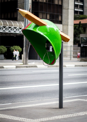(Brain.com 2012-08-10)在巴西現正舉辦一項藝術活動,請來一百名設計師幫電話亭換換造型,將公共電話轉變成一尊尊「可互動式」的街頭藝術!
