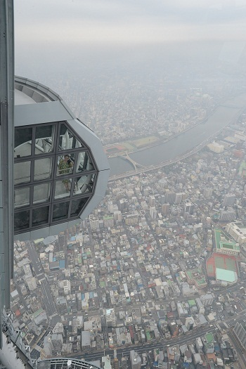 不論是高350公尺,還是高450公尺的展望台,都比曾經是日本最高建築的「東京鐵塔」(333公尺)還要高。當天空澄澈、萬里無雲時,不單可以眺望高樓林立的東京市區與東京灣的景色,連神奈川縣的三浦半島也能一覽無遺。然而,一但碰上了陰雨天,就什麼也看不到了。