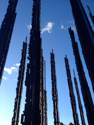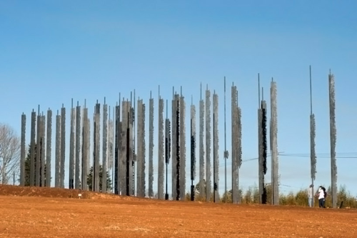 Marco Cianfanelli使用了50根立在水泥地上的鋼柱排列組合成曼德拉的側臉!