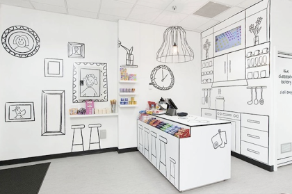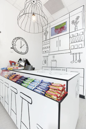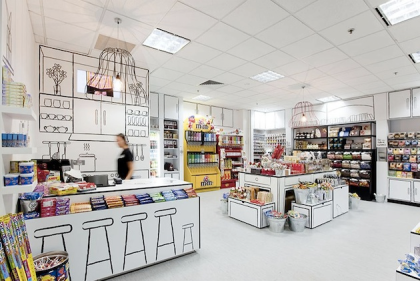 為了喚起顧客童年的情感,Red Design Group回到房屋基本的白色調,以兒時手繪感的線條,建構出視覺的裝潢,每一個角落都暗示著「這就是你幼時的房間」,而糖果就是賦予整間房的重頭戲,為你的童年生活妝點色彩。逛著這間糖果店,就像是閱讀圖畫書一樣,一頁翻過一頁,充滿驚奇和幻想。看來裝潢並非得花很大一筆錢,你或許也能在自己家裡嘗試看看。