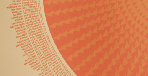 每年總會有這麼幾款月曆,複雜到彷彿是設計師的自我極限挑戰,這款天書般的月曆就是走這個路數。實在讓人搞不清楚狀況的圖樣,非得配上關鍵的黑色圓片才能顯示天機,雖然迂迴了點,不過還挺好玩的。