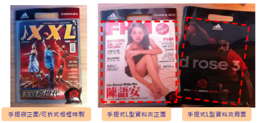 •入選原因:將手提袋+L型資料夾雙重創意概念結合在一起,吸引讀者閱讀,並且可保留住客戶的形象,商品增加曝光度,提升消費者對於品牌的好感度。