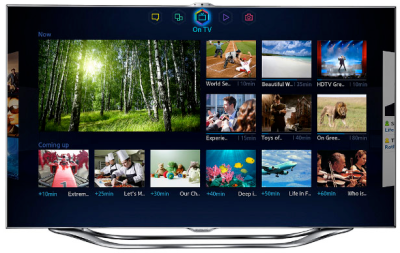 三星智慧電視透過Smart Hub使用介面及專為電視開發的app,讓使用者登入Netflix、YouTube、Facebook及Skype等服務,另外還有兩大特點:聲控互動及自動推薦。首先,智慧電視能夠接收並了解使用者說出的完整句子,進行聲控互動。其次具有「s-recommendation」功能,能夠推薦影音內容給用戶觀賞。