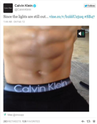在這次斷電意外中,最被各界看好的操作典範是OREO。在斷電後一小時內,OREO連文帶圖的就發出推文。而Calvin Klein也運用twitter新推出的6秒鐘行動影片分享服務Vine即時為自家產品曝光。車商奧迪(Audi)對以賓士命名的巨蛋也發文說:「該送些LED燈過去了」,調侃意味十足。即時行銷的優勢,除了反應突發事件外,這次也有一則借力使力的案例。在礦泉水Mio的電視廣告甫結束,氣泡水機(SodaStream)立即推文說:「用SodaStream喝mio也很棒!」