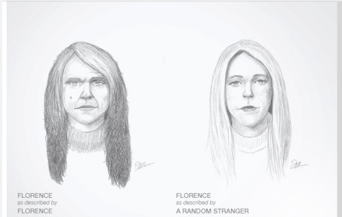 完成後,兩幅畫並排對照「妳和別人眼中的自己」的差別。實驗結果:奇妙的是,大部份的人在別人眼中,都比自己描述的更美、更開朗、更有自信。