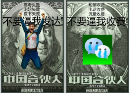 ▲ 飛博替電影「中國合夥人」做社群行銷,在微博上惡搞台詞的圖片,吸引網友大量分享。