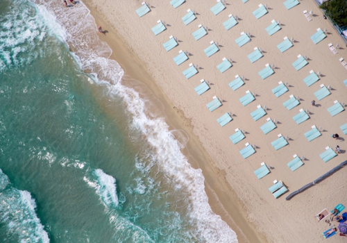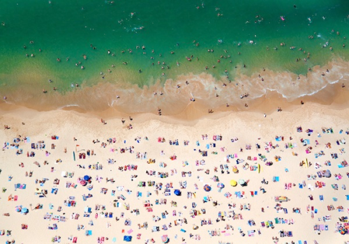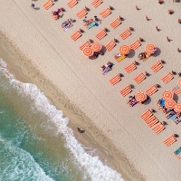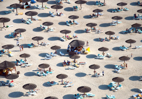 (2013-06-07)夏天容易讓人想到海灘,享受熱浪與海浪的雙重刺激。但人滿為患的夏日海灘,從空中往下看,可能交織出什麼樣多彩而擁擠的圖案?