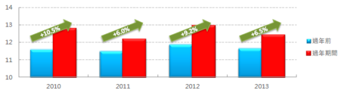 比較前三年的整體收視率,從除夕至初三為止,2012年整體收視率明顯高於2011年及2013年,2011及2013年收視率則偏低。