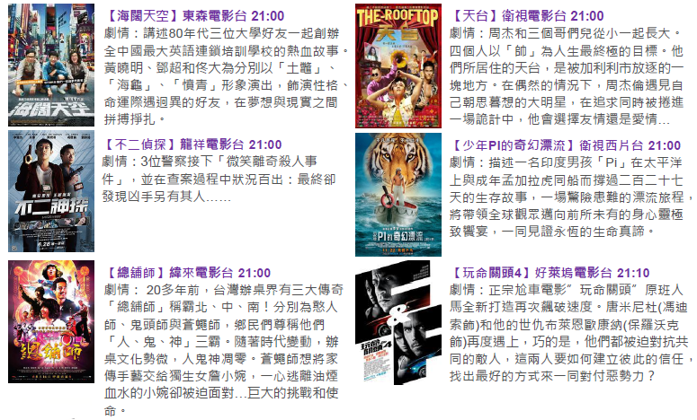 以下介紹除夕晚上9:00的電影節目,搶佔年假的「圍爐收視」。