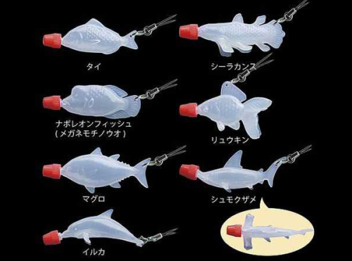 ▲甚至還有扭蛋推出了一系列以其他魚種當作造型的魚型醤油の容器:たれびんストラップ(此為 2012 年推出之商品,圖片來源)