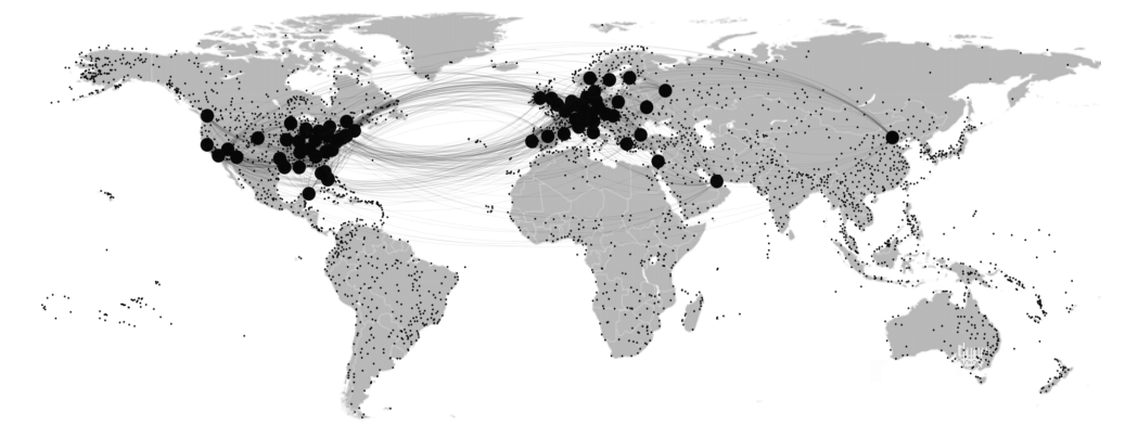 這聽起來是個數學問題,只是飛機場的位置與航線不是依照數學設計的,是因政治經濟的發展逐漸形成的,一旦關鍵點發生情況,可能連帶全球活動的停滯,甚至災難性的損失。所以學者們要從航線的拓普(Topology)結構,與實際的運作情況做一比較。