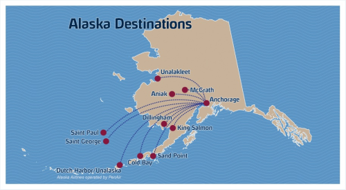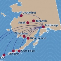 美國佛羅里達州Tempa Bay的聖彼得堡機場,就是那一地區的轉接中心,對外連接24個機場,每個機場僅有一個航班,是標準的單線連接,一旦聖彼得堡機場出了狀況,24個機場全數停飛。又如安克拉治(Anchorage)是連接北美與亞洲的轉接點,但也是阿拉斯加州偏遠地區的轉中心,一旦出了狀況機場停用,北美與亞洲仍有替代航線,但阿拉斯加州的偏遠地區則全部被隔離(如下圖)。