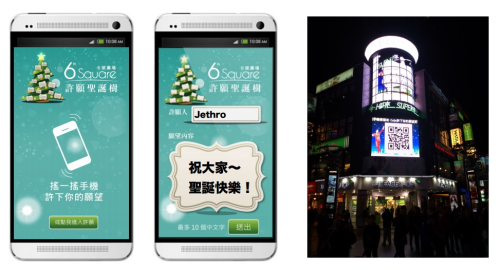 鍾日誠分享去年耶誕節在西門町推出的跨螢幕互動案例:當民眾掃描數位看板上的QRCode,進入6號廣場許願耶誕樹的頁面後,可以輸入名字和十個字以內的願望,待工作人員審核後,願望就會顯示在大螢幕上。活動即使沒有事前宣傳,仍在一小時內收集超過97則願望,可見簡單的互動模式,對消費者也很有吸引力,值得台灣品牌與行銷人進一步嘗試。
