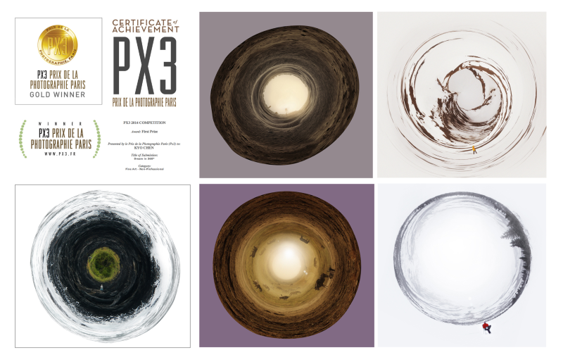 其中獲得PX3金獎作品「Dream in 360°」,更是歷經四年、耗資超過新台幣200萬,親自前往南極、北極、撒哈拉大沙漠、肯亞以及南美加拉巴戈群島後,再以獨特美學概念與影像技術所完成的世界級攝影作品,夢幻般將地球極境之美呈現在世人面前,為台灣在該獎項首次贏得金獎。