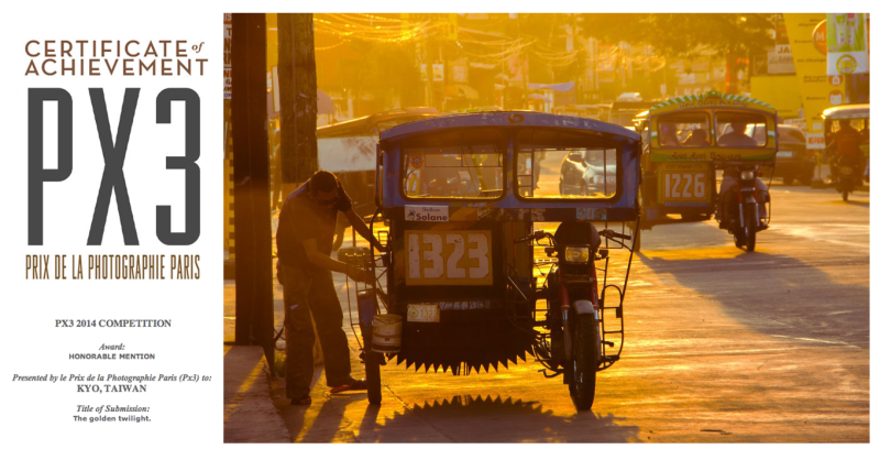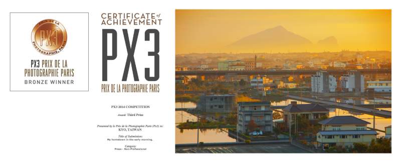 (2014-07-10)法國PX3國際攝影大獎公佈得獎名單,馬賽Kyo個人獨獲2金、8銀、4銅、10評審榮譽獎,破紀錄獲得24項大獎。