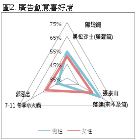 根據這次調查發現,看完廣告的受訪者超過半數以上,都認為對廣告感到印象深刻,並且也有超過七成的受訪者表示,廣告所傳遞的訊息十分明確;深入分析之後也發現,特別是女性受訪者更是喜愛此種廣告創意的方式。