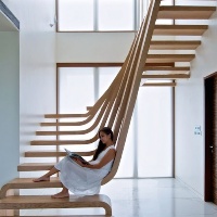 【天天看見好創意】是木製的樓梯,也像是宛如瀑布的裝飾,甚至可以坐在上面休息;遠看,還像是一把豎琴。