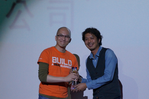 左起:AppWorks共同創辦人程九如頒獎給奧美廣告業務執行長曾致暐(圖/DMA提供)