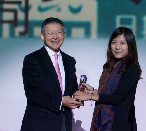 左起:旺旺中時傳媒(北京)總經理的林淑黛頒獎(圖/DMA提供)