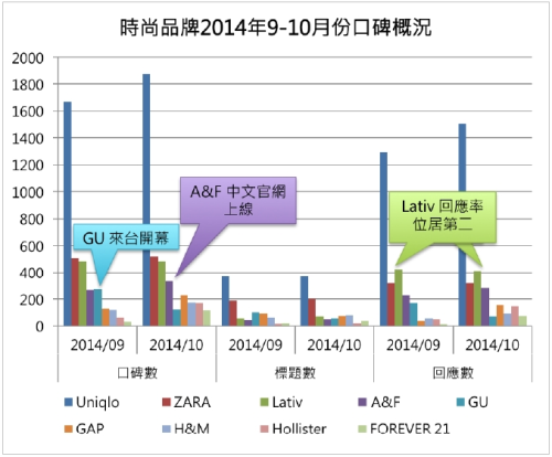 (2014-12-16)時裝品牌Uniqlo、ZARA、GAP、GU,以及即將進入台灣市場的H&M、A&F、FOREVER 21,掀起時尚品牌爭奪戰。而它們在網路上的「口碑之戰」誰能殺出重圍呢?