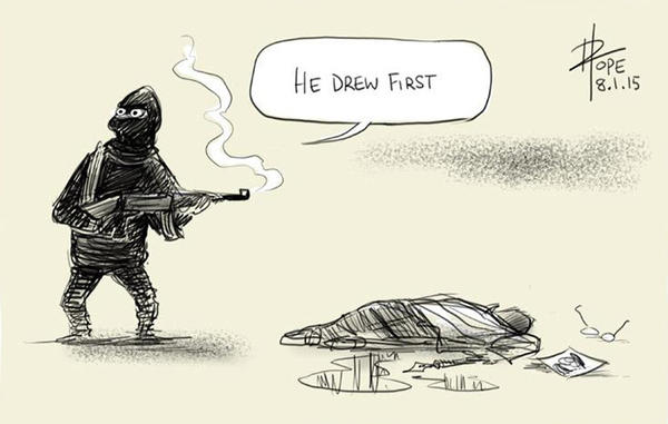 (本文轉載自大人物網站──聲援法國查理週刊槍擊案,來自全球 28 件插畫作品)