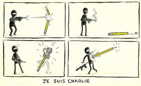 註:查理周刊《Charlie Hebdo》,法國報社,經常針對宗教或政治人物推出諷刺漫畫,立場相當左派,具有高度爭議性。這次的事件據信是因《Charlie Hebdo》刊登了一系列嘲諷伊斯蘭教的漫畫,而引發的報復性攻擊。