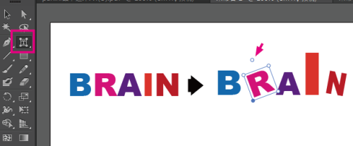 過去CS版本,若要在文字上做變化,將brain(左)繪製成brain(右)的效果,都必須將文字轉外框,或者將文字個別分開,一個個分別拖移、變形、旋轉、及調整間距,現在只要使用觸控文字工具 ,就可以隨意選取單一字母做變形、旋轉;若想要更換字型,直接選取想要的字形就可以了,已經做好的變形也不用重新設定,我愛死這個功能了 !