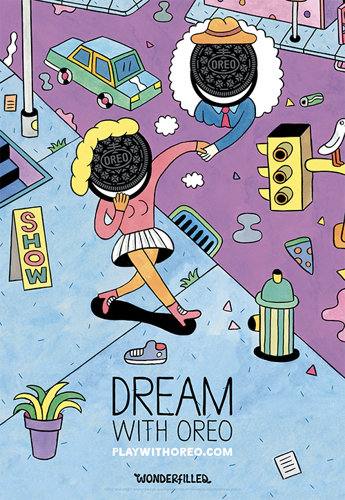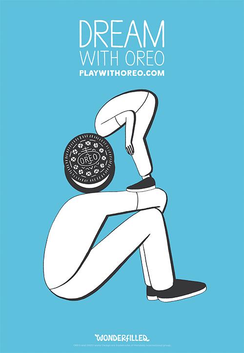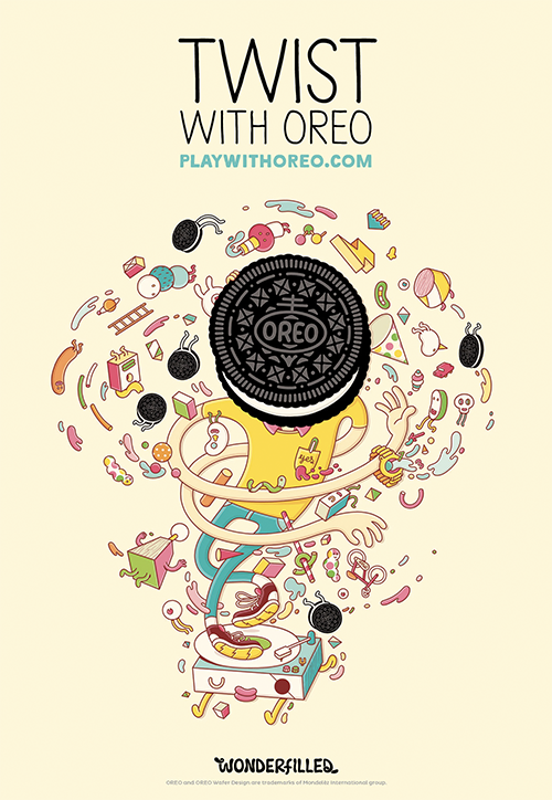 Oreo尊重插畫家的創意,在合作中,要求插畫家以一個字為題,像是「Dream」、「wonder」、「twist」、「roll」等自由作畫,只要求畫中的人,以Oreo為頭部或是臉部。其他都不加干涉。