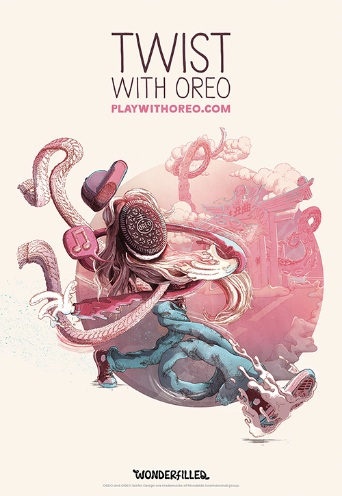 Campaign進行到三月,Oreo安排一系列的戶外廣告,並邀請十位插畫家為Oreo操刀。