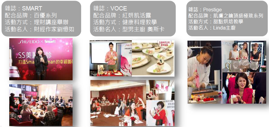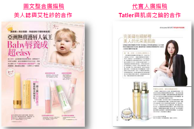 台灣妝品市場競爭日趨激烈,為接觸新客增加市場佔有率,媒體的曝光不再侷限於流行類雜誌。