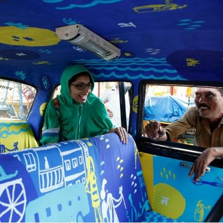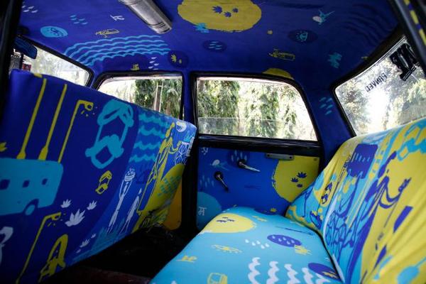 看在設計師 Sanket Avlani 眼中,只覺得一整個浪費了當地的設計能量!因此他決定推出 Taxi Fabric 計畫,邀請印度設計師為計程車來個免費的「車」內設計,活潑的風格和年輕的用色,讓這項由來已久的交通工具,變得完全煥然一新。