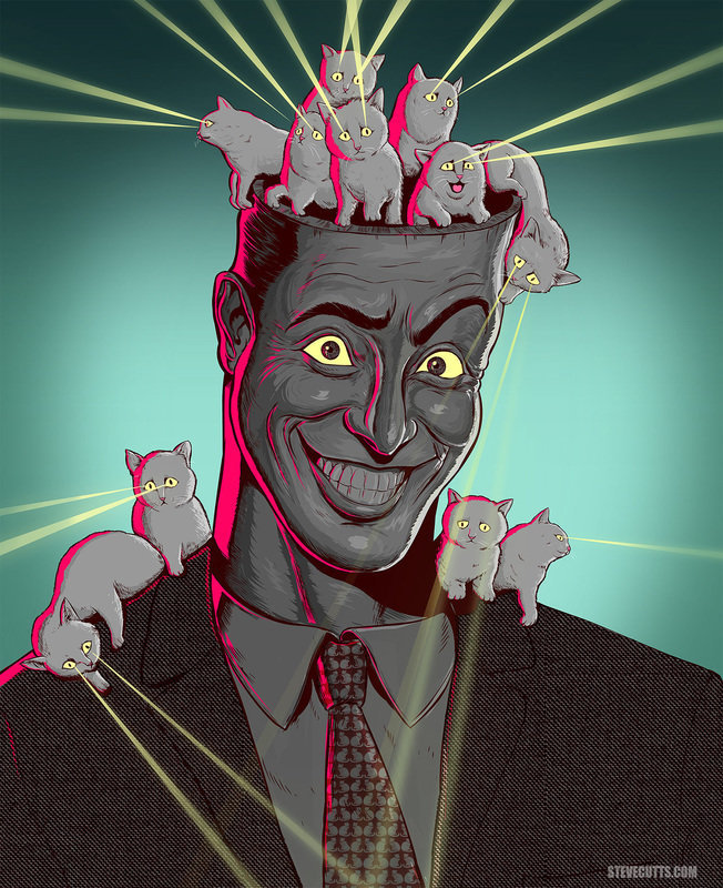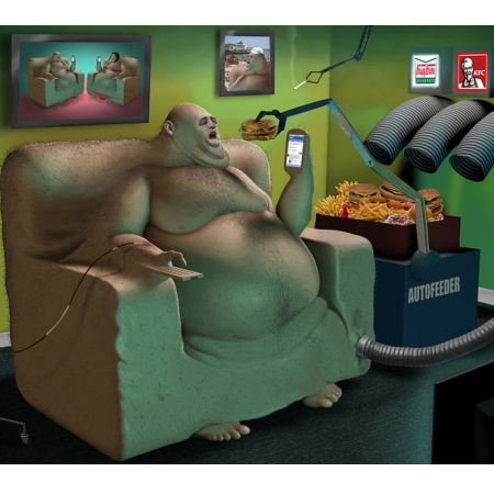 (2015-10-13)插畫家 Steve Cutts 以近乎噁心的誇張漫畫風格呈現他眼中的現代社會,作品中表現了科技過度發展的今日,在物質各方面過度消費卻精神貧乏的人類群像…