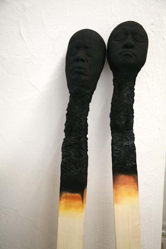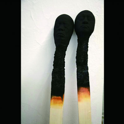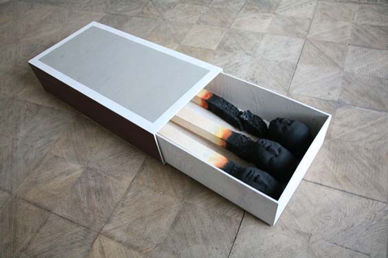 (2015-11-23)德國藝術家 Wolfgang Stiller 的《火柴人》系列作品,以火柴燃燒後焦黑枯槁的特性,來象徵當代人被生活折磨、備感壓力、焦頭爛額的處境。