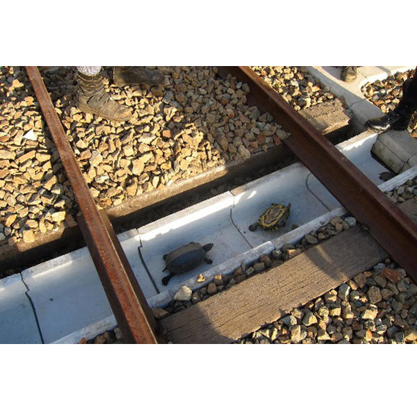 鐵軌下的「烏龜專用道」,讓烏龜暢行無阻。