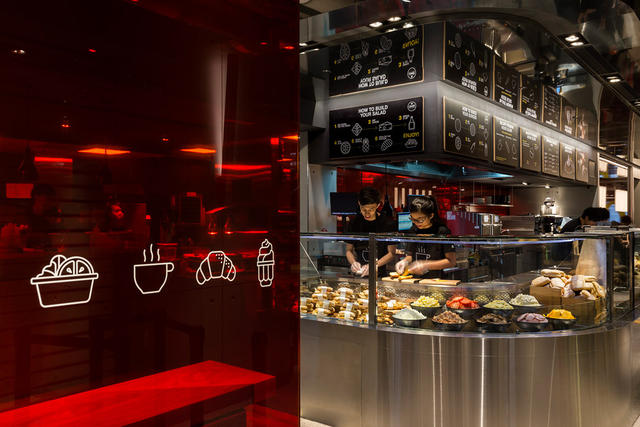 消費者想要點餐的話,可以到櫃檯、電腦化自助站或是待在桌邊,另外還設有冷食區,沙拉、點心和飲料在這裡都找得到。