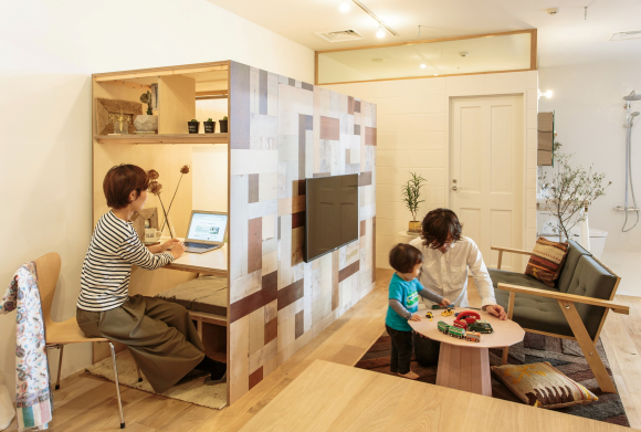 家中小屋一共有四種設計,最新款的 co-ba home,就是以「與家人生活相容的工作空間」為出發點所設計的,內含一張橫跨窗戶的兩面書桌以及隔間,能隨個人需求而選擇在牆面前或牆面後工作,因此能 在保有個人空間的情況下,獨立工作或是與家人同歡,非常適合在家工作的上班族或 SOHO 族。