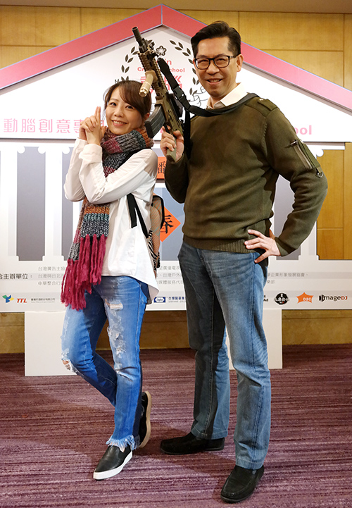 先勢公關董事長楊忠翰(右)也化身軍校生,與大家同樂。(Brain.com/攝)