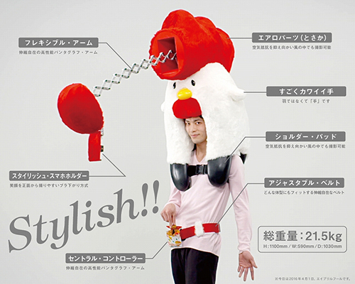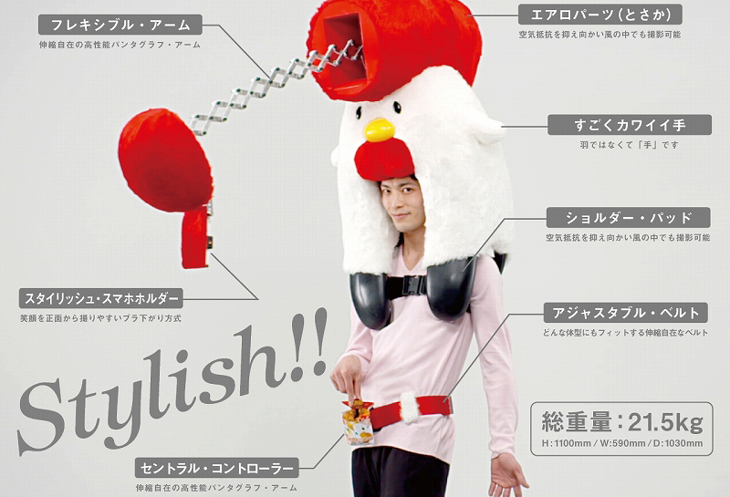 自拍風潮正流行?日本超商LAWSON研究所最新發表一款自拍神器,號稱是夢幻般的新商品「夢之自拍機(雞)」,價格更是破天荒的268,000,000,000日幣,總重量為21.5公斤。為什麼會推出這款商品呢?原來是因為雞塊是LAWSON的人氣商品之一,總是帶給消費者滿滿的笑容。而這項商品呢,也只認證消費者的笑容才能使用,希望透過這款自拍神器,能夠讓這個世界充滿「美味的笑容」。