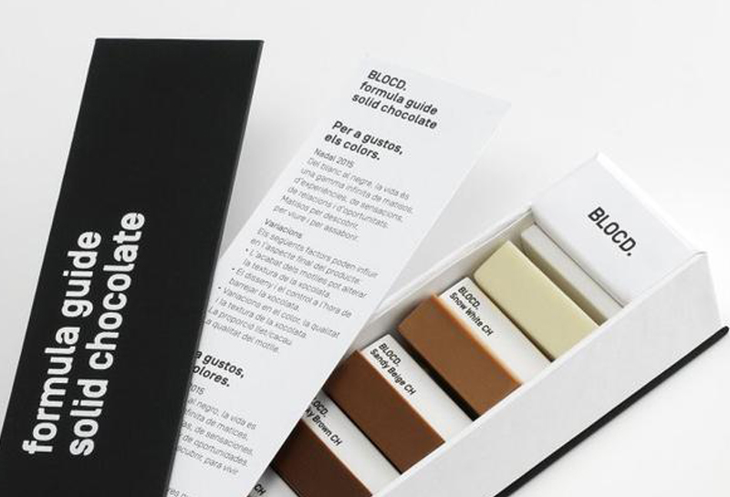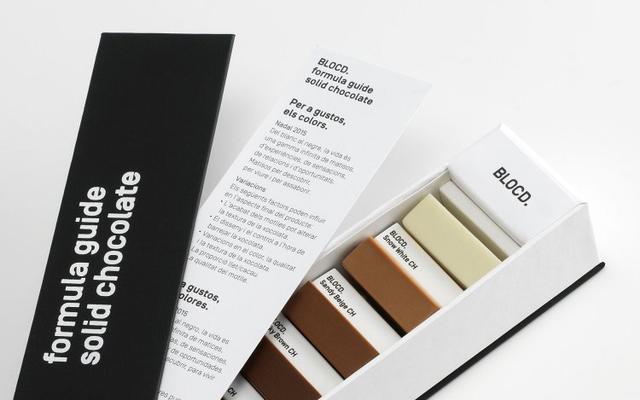 最上方的『BLOCD.』是這間設計公司的名稱,接下來每塊巧克力也都配上了對應的色號說明。