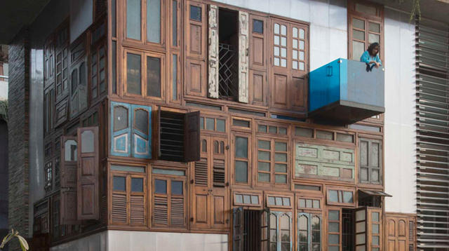 就拿正前方的大門和窗戶來說,這些門窗全都來自於市中被拆除的建築物,拼湊在一起,就好像一件巨型骨董,充滿隨歲月累積下來的韻味。