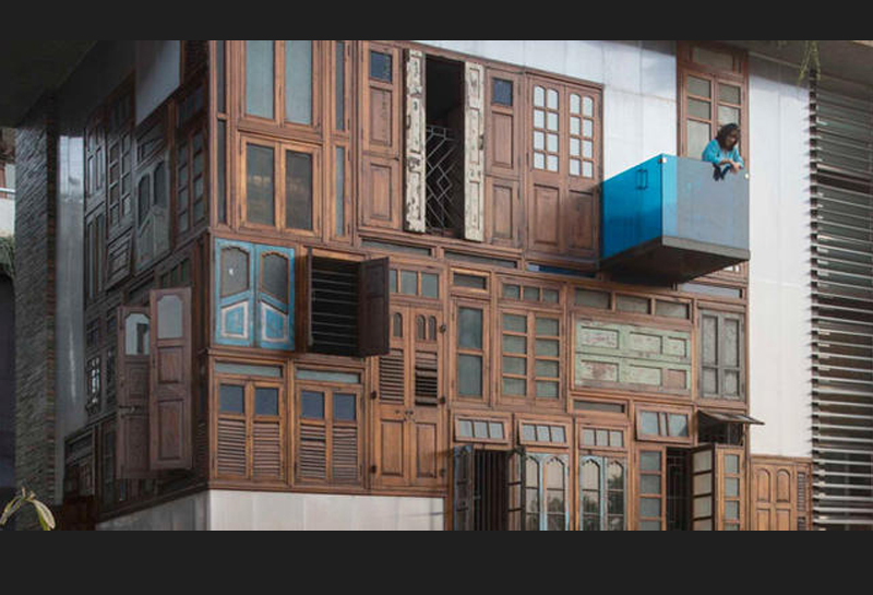 (2016-05-10)老舊的門窗、年代久遠的木頭樑柱、鏽痕累累的金屬牆面和水管,乍看之下,這間位於孟買的Collage House似乎就是一棟等著都更的老房子?