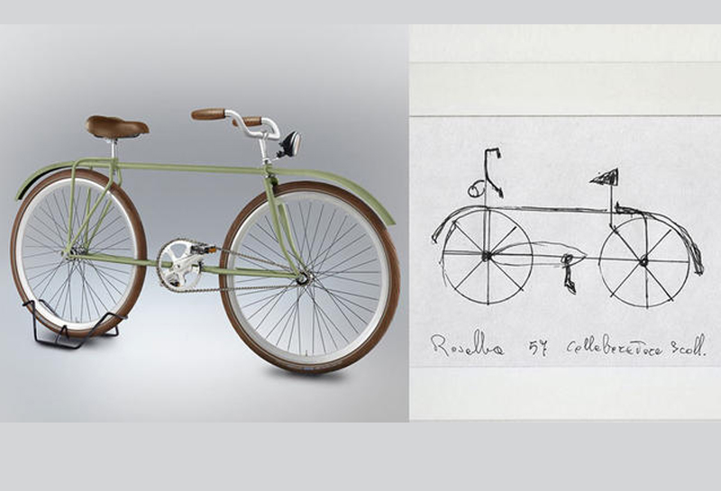 在整理這些草稿時,Gianluca Gimini 也針對細節做了修飾,例如沒有踏板的、就補上踏板,少了鍊子的,就加上鍊子,儘量把所有作品轉化為理論上可運作的腳踏車,並且為它們加上配色。