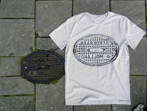 一件簡單的 T 恤,配上牛仔褲、短褲或短裙,是許多人夏天的標準裝扮,只是T 恤每個人都有,怎麼樣才能與眾不同呢?德國藝術團體 Raubdruckerin 就利用路上常見的人孔蓋、水溝蓋等公共設施,把素T變得又潮又有創意喔!