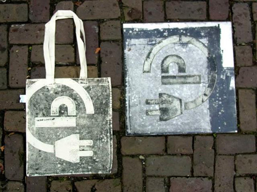 Raubdruckerin 運用拓印的技巧,在人口蓋、水溝蓋、通風口上塗上一層薄薄的油墨,印在素 T 或袋子上,原本平凡的 T 恤立刻成為獨一無二的潮 T!